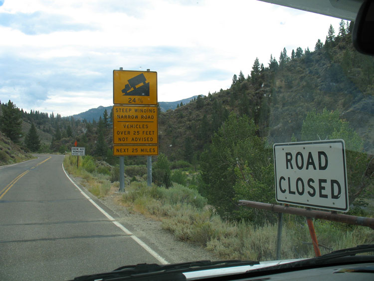 En weer gaan we verder. Maar nemen we deze weg nou wel of niet... Onze camper was presies 25 feet dus dat moest kunnen...